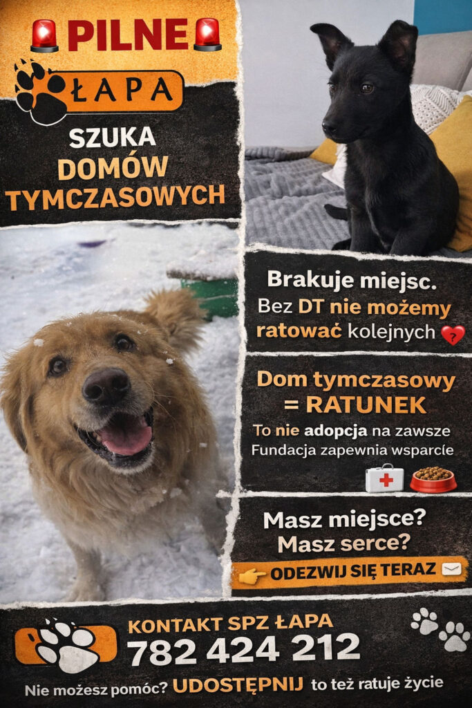 Kolejny szczeniak czeka na pomoc, a bez domów tymczasowych nie mamy jak pomóc, hotele też pełna obsada bo czas ferii w pełni… Dom tymczasowy to nie adopcja na zawsze — to bezpieczna przystań, chwila oddechu, szansa na normalność… My zapewniamy wsparcie, karmę i opiekę weterynaryjną. Potrzebny jest Twój dom i serce. Jeśli: masz kawałek miejsca możesz pomóc choć na krótki czas chcesz realnie zmienić los psa — odezwij się do nas napisz na PW: https://www.facebook.com/StowarzyszeniePomocyZwierzetomLapa lub zadzwoń na nasz ŁAPOWY nr tel 782424212